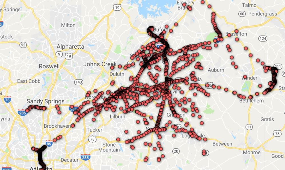 Using just a month's worth of Atlanta Police Department data, WSB-TV investigative producer Josh Wade was able to plot several vehicles' travel patterns tracking their exact location with the precise time of day.